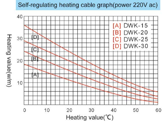 Câble chauffant autorégulant graphique (alimentation 220V ac)